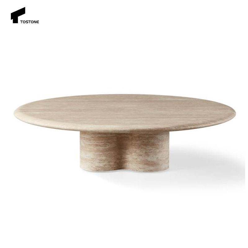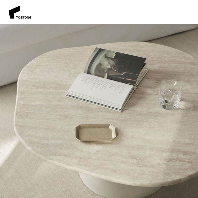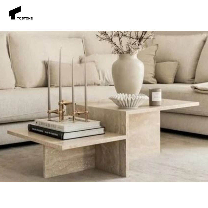 Table basse en travertin blanc naturel Tostone 2025, design tendance, pour un intérieur minimaliste, salon, villa, décoration intérieure