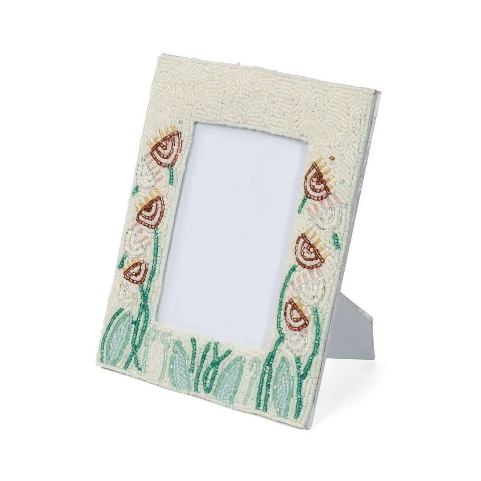 Cadre photo rectangulaire en tissu avec perles florales Toucan, support pour photos fait main en perles de rocaille, étui pour portrait, décoration de table