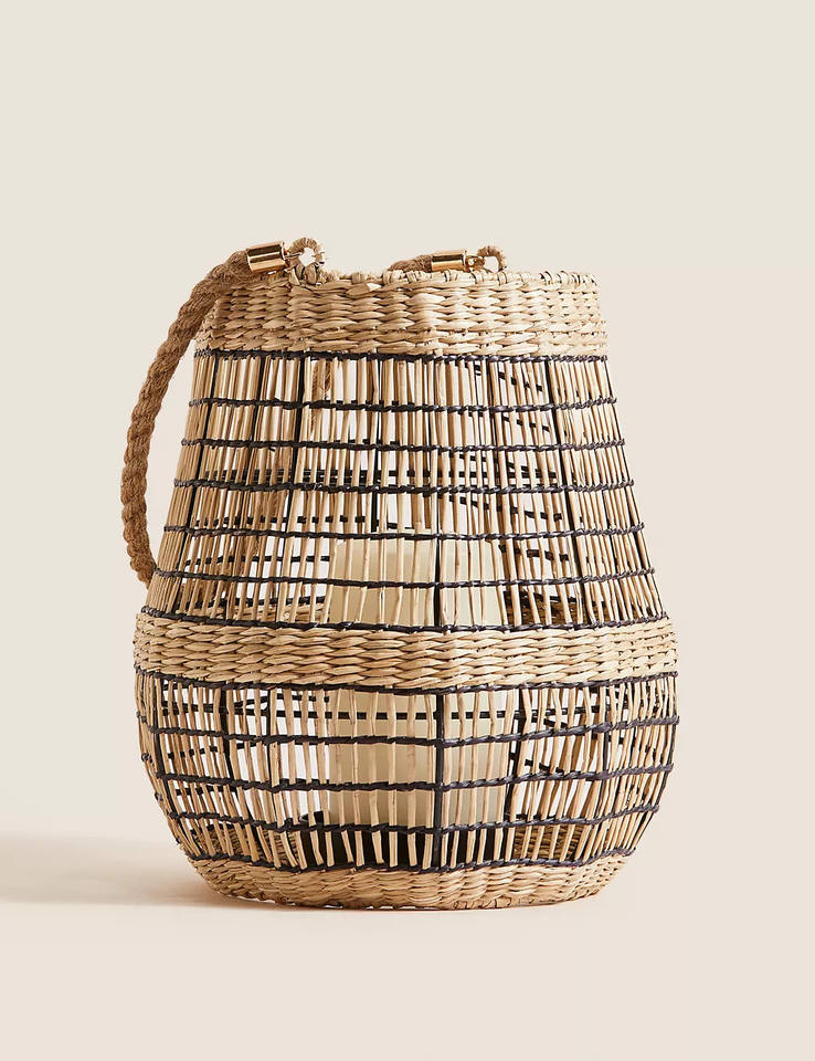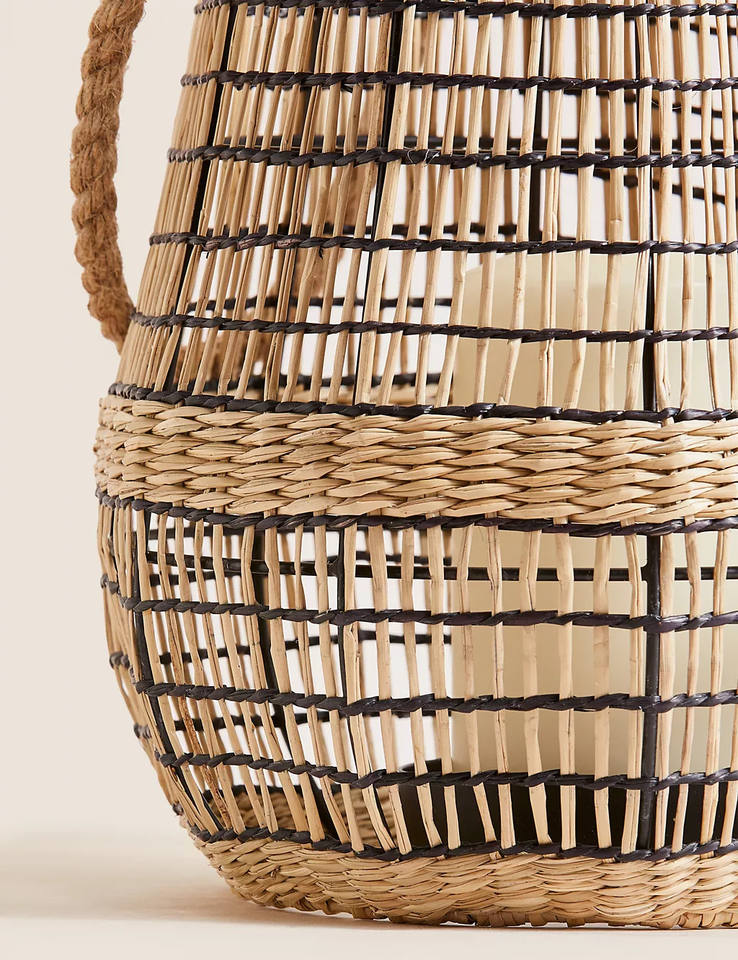 Toucher de texture rustique aux espaces intérieurs pour une lueur chaleureuse et accueillante décor à la maison bougeoir lanterne en jonc de mer