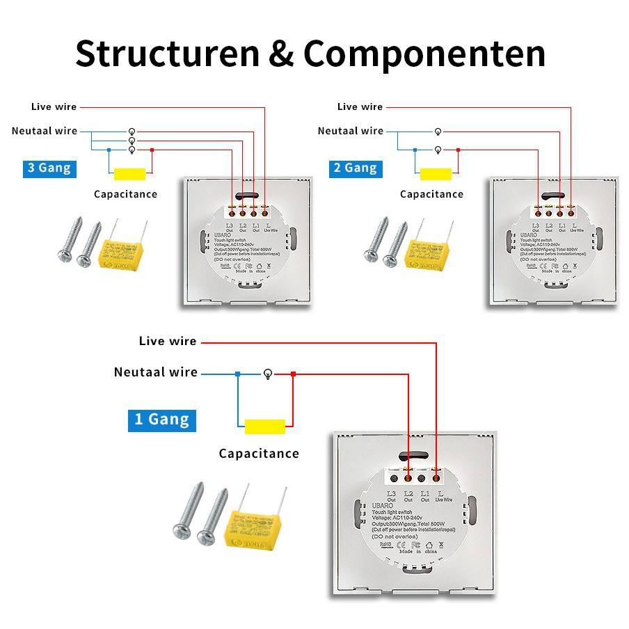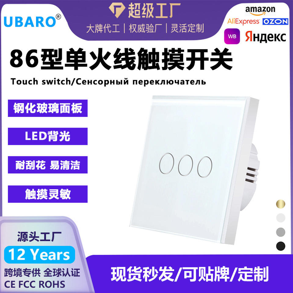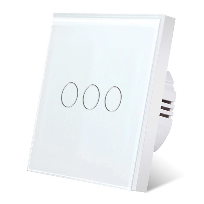 Interrupteur tactile de type 86, 3 gangues, panneau en verre trempé, capteur intégré, interrupteur mural