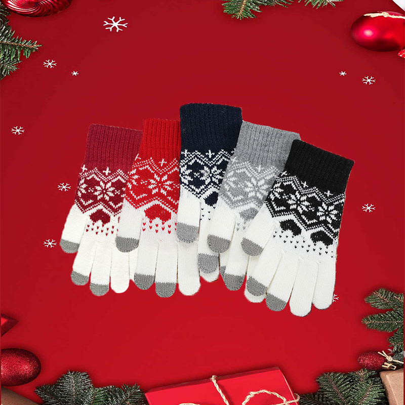 Écran tactile Jacquard garder au chaud respirant acrylique tricot gants d'hiver pour la conduite de ski en plein air cyclisme