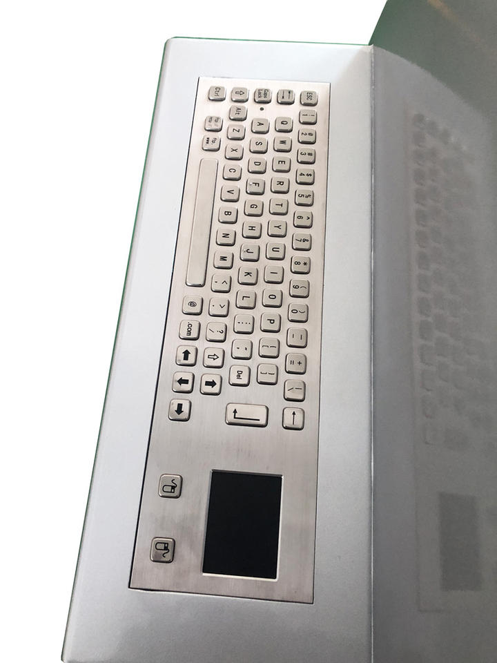 Kiosque à écran tactile avec un design élégant et conforme à la ADA, écran tactile SAW anti-vandalisme, écran LCD TFT et un clavier en acier inoxydable.