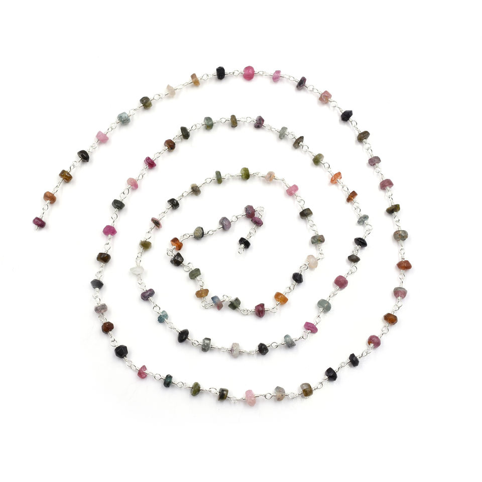 Chaîne en fil de chapelet plaqué rhodium en laiton tourmaline vendue au pied