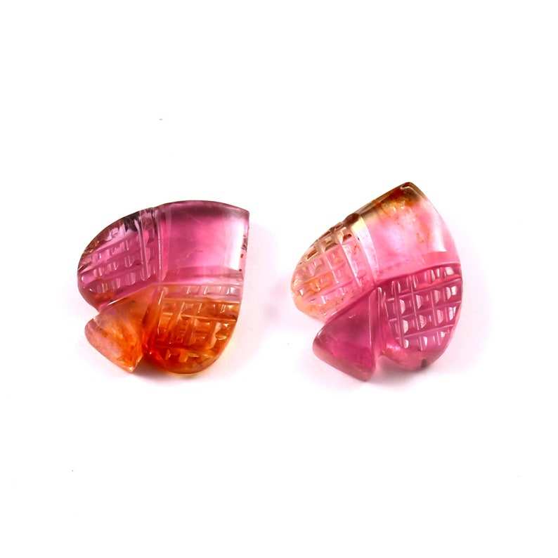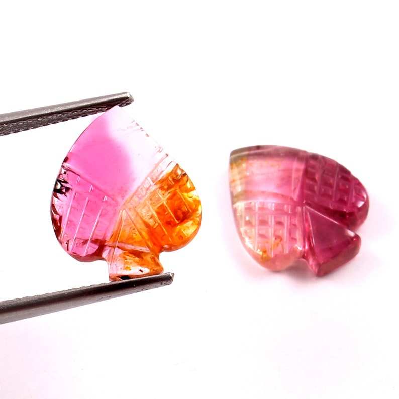 Bio Tourmaline naturelle sculptée à la main, taille de cœur fantaisie 12x14mm, 1 paire, 8.95 Carat + pierre naturelle naturelle AAAA, livraison gratuite