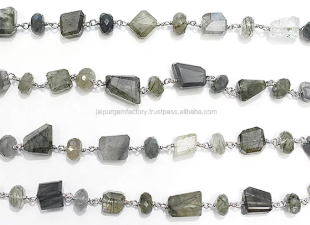 Product Name::Tourmaline Rutilated Quartz Sterling Silver Rosary Wire Wrap Chain
