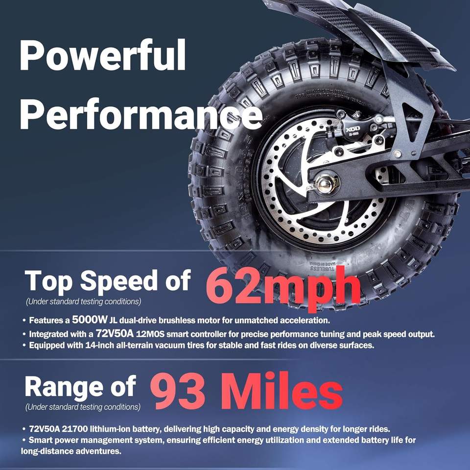 Toursor X13 72V Adult Electric Dirt Bike 2-Wheel 10,000W Dual-Drive JL Motor ABS 62 MPH Top Speed 50A Lithium Battery Included