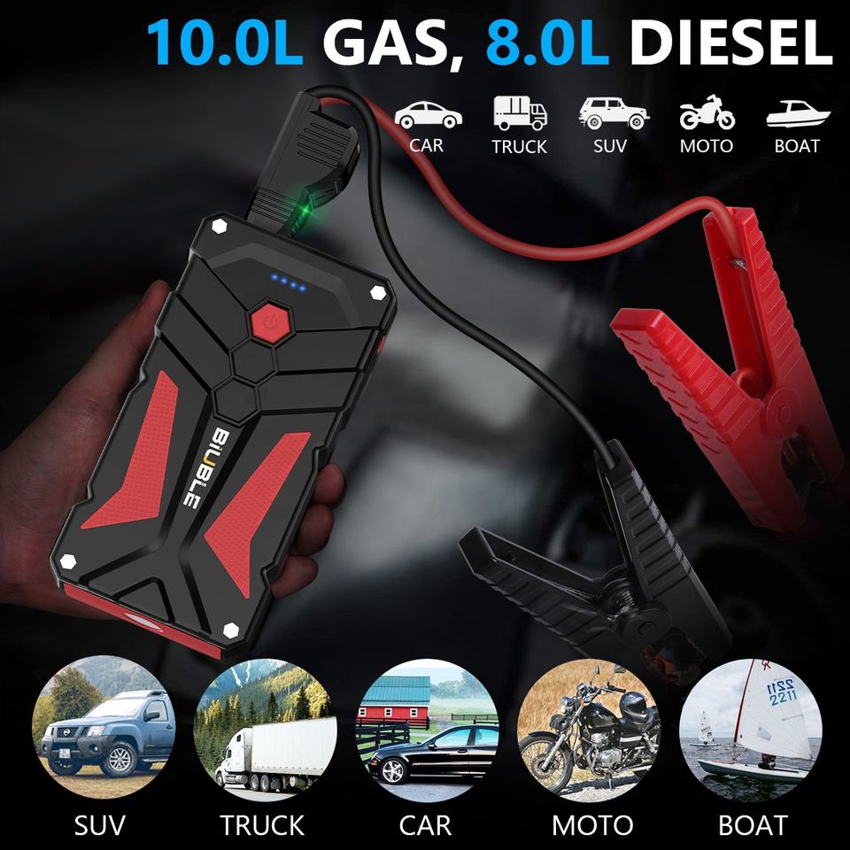 With LED Light, Spark Proof, Emergency Life Hammer, SOS Light, Emergency Power Bank, DC 12V10A output, Jump Starter, CompassFunction