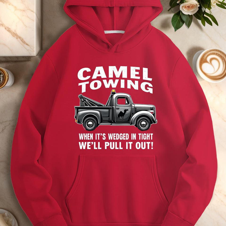 Tow truck with camel silhouette women's casual hoodies