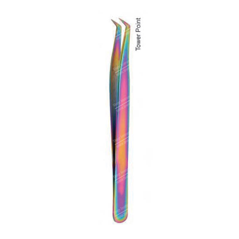 Pince à épiler d'extension de cils en acier inoxydable Tower Point Revêtement plasma multicolore