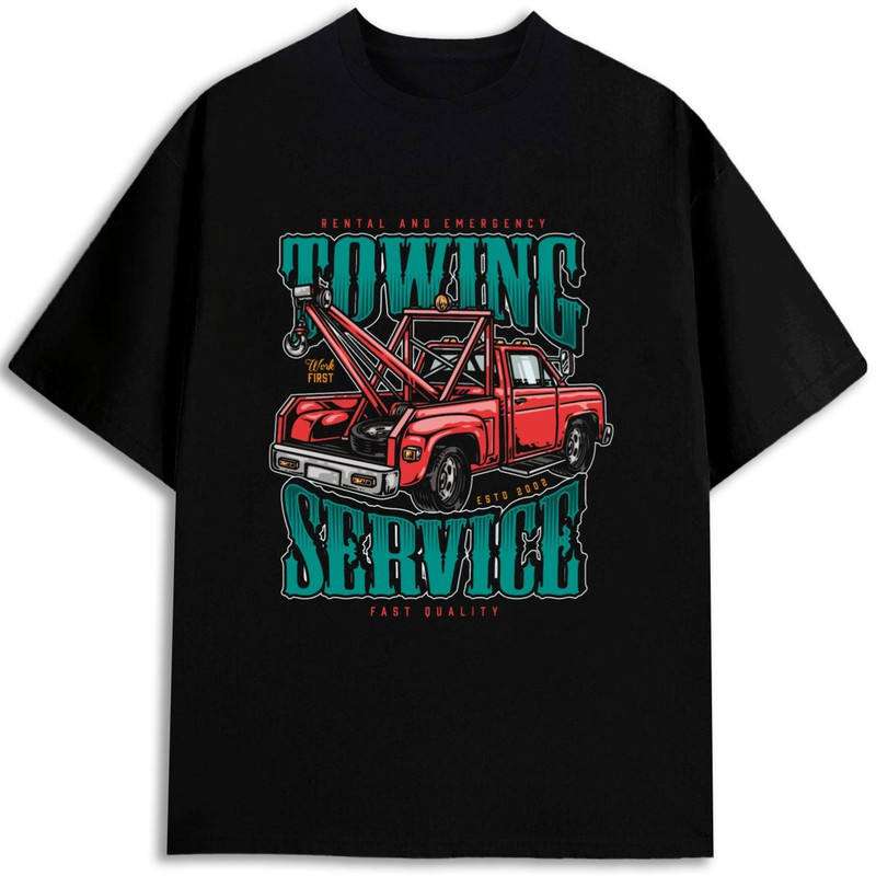 T-shirt pour homme Towing Service, 180 grammes, 100% coton, imprimé sérigraphié, manches courtes, jersey, anti-rétrécissement