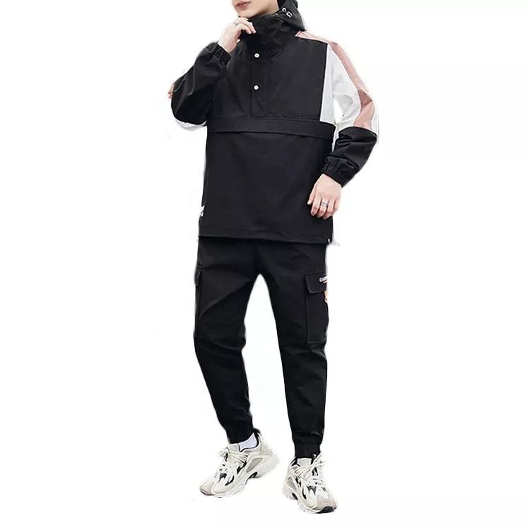 Survêtement veste de couleur bloquée poche Cargo Joggers sweat-shirt demi-fermeture éclair broderie Logo personnalisé hommes Casual automne adultes