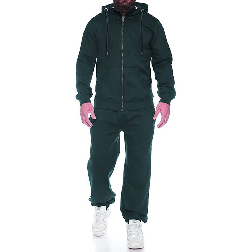 Survêtement Hommes avec Poches à Fermeture Éclair Full Zip Hoodie Survêtement 2 Pièces Running Jogging Sports Casual Sweat Suits