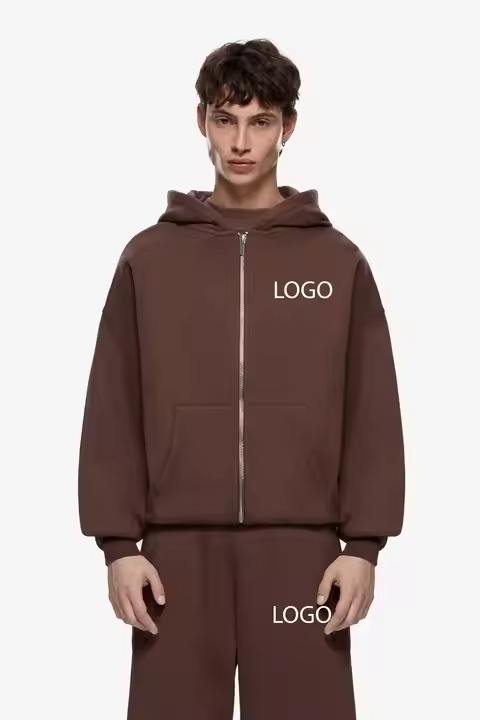 Survêtements en tissu respirant à motif uni pour le jogging et le streetwear décontracté d'hiver – Vente en gros – Nouveauté – Sweat à capuche zippé pour homme