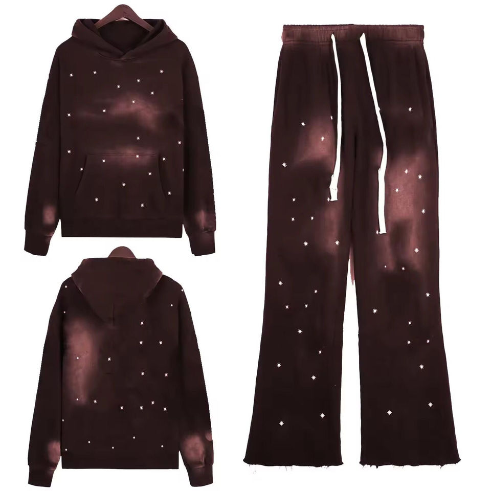 Survêtements Sun Faded Rhinestone Fabricants Baggy Survêtement évasé surdimensionné pour hommes Poids lourd à la mode
