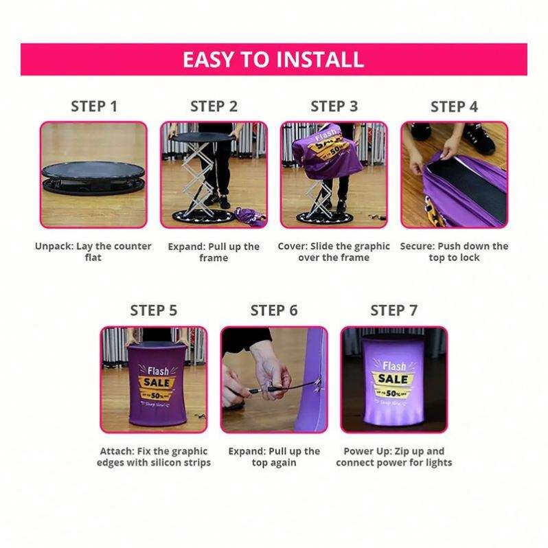 Table pliante pour salon professionnel, table portable carrée en tissu, stand pop-up, bureau pour salon professionnel, produits promotionnels, table pop-up pour événements