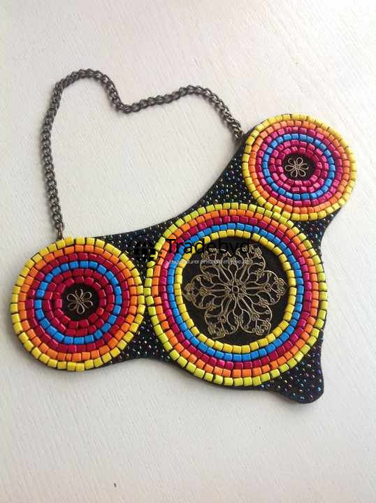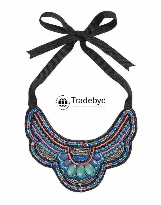 Tradebyd Collier de broderie Bijoux faits à la main Collier ethnique artisanal unique pour femmes et mariées
