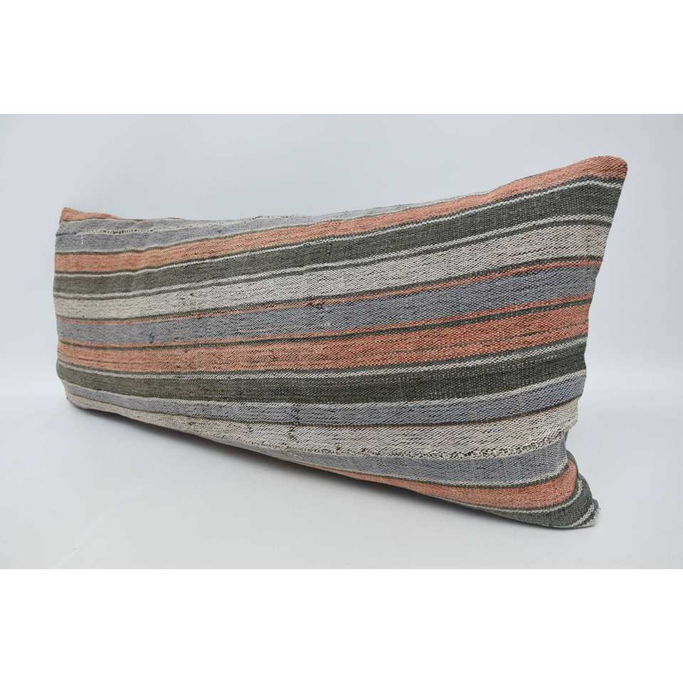 Traditionnel 16x36 pouces Orange rayé laine oreiller confortable chaud tissé à la main soie literie Vintage carré Portable pour noël