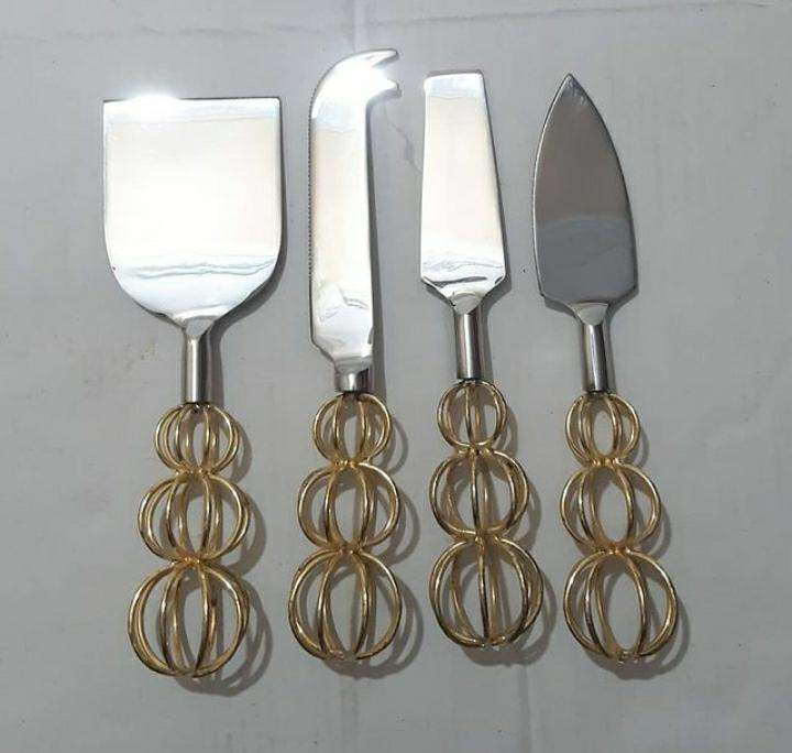 Traditionnel 4 pièces Premium couteau à fromage ensemble feuille Design poignée en acier inoxydable vaisselle couverts épandeur couteau excellent cadeau