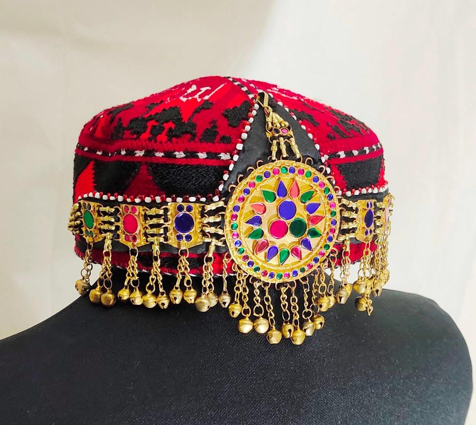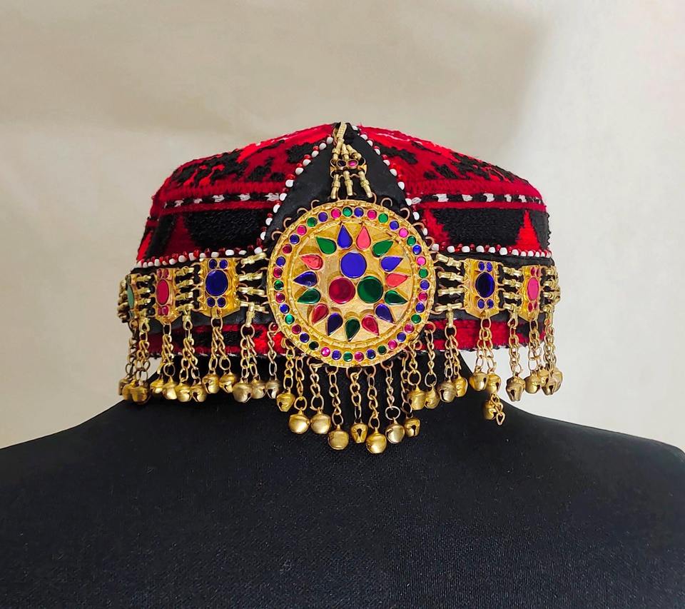Barrette à cheveux traditionnelle afghane pashtun, brodée à la main, vintage, ethnique, en tissu