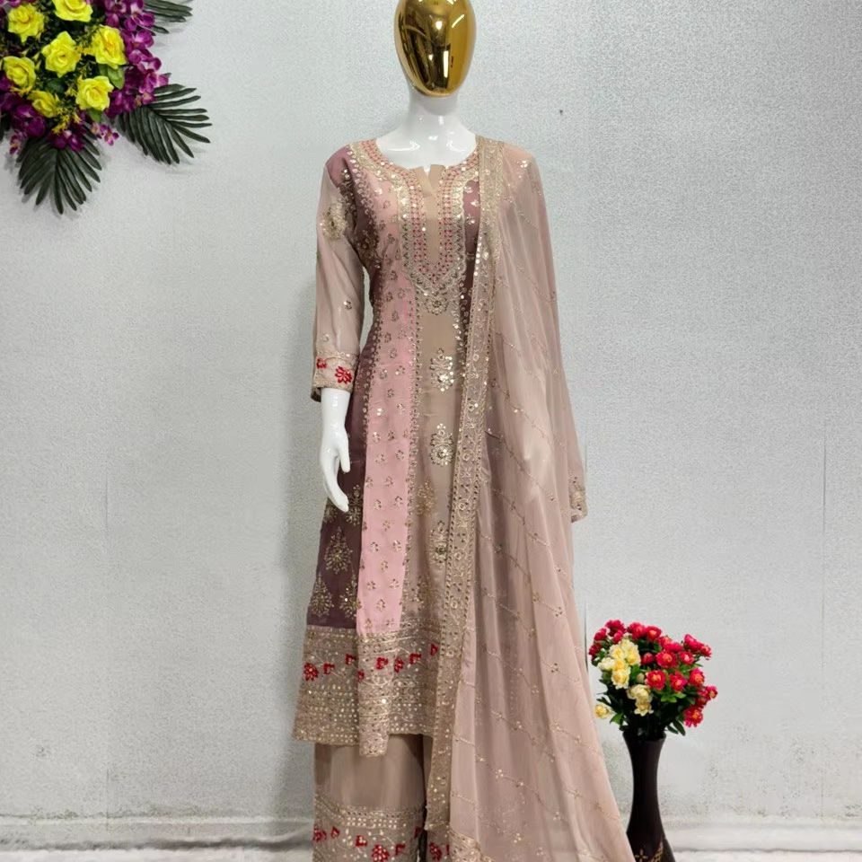 Robe traditionnelle Anarkali pour femmes indiennes et pakistanaises Tissu Georgette avec broderie pour les fêtes et les fonctions