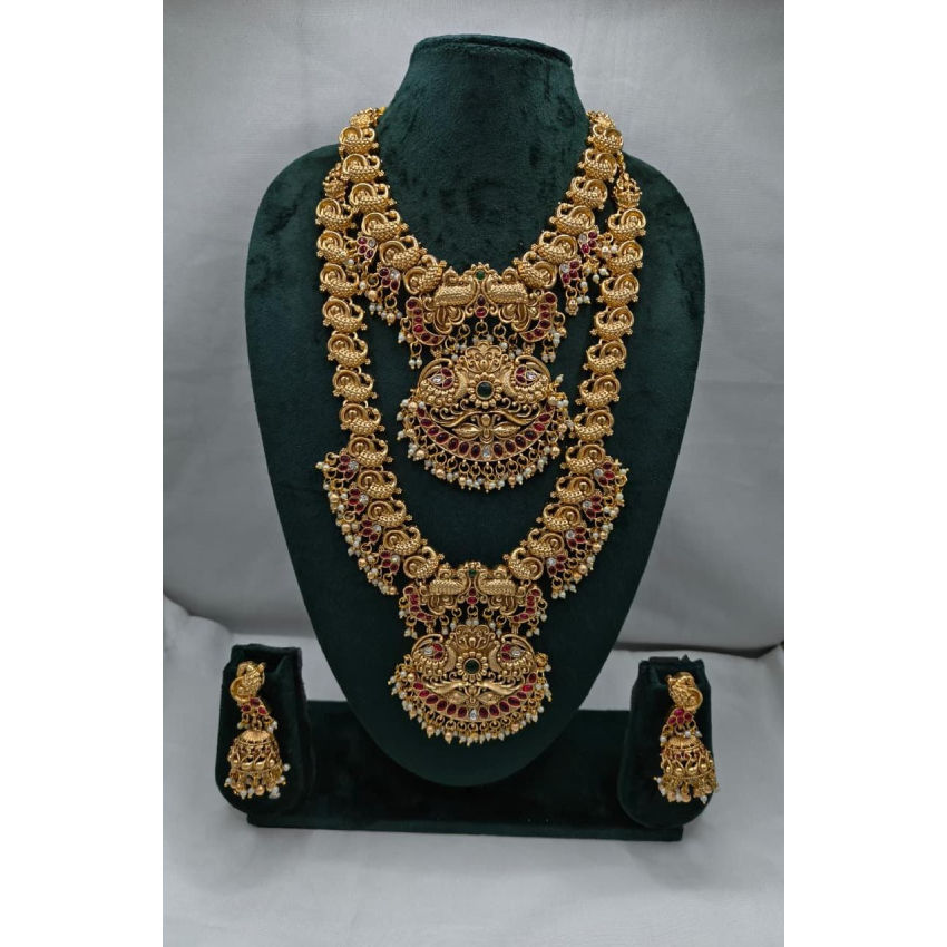 Products Name:Trending Fancy Collection Gold Plated Kundan & Pearl Necklace Set