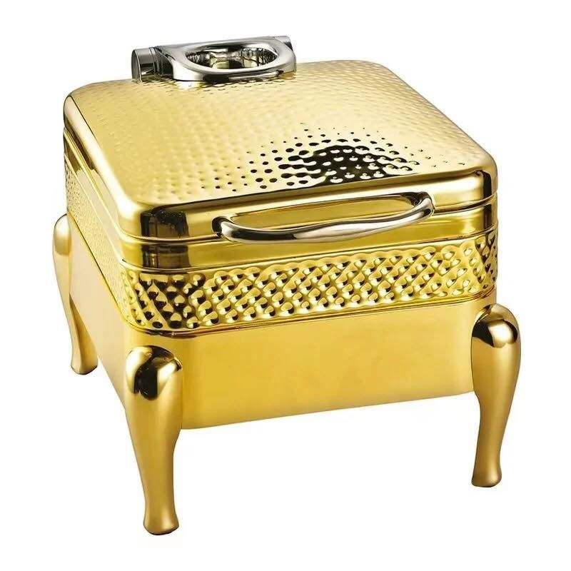 Grand chauffe-plats en acier inoxydable fini en cuivre de conception arabe traditionnelle pour la restauration et les hôtels