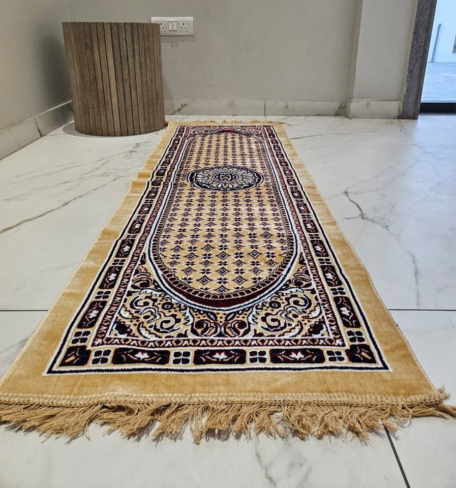 Tapis de prière traditionnel arabe en polyester jacquard à poils moyens, fabriqué à la machine, avec coussinets, pour la maison