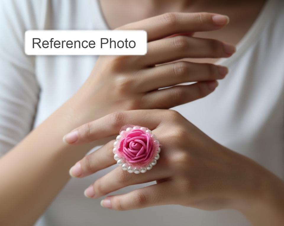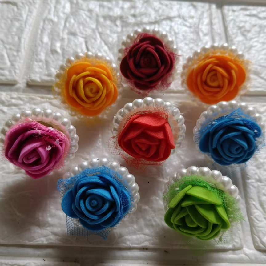 Bague tendance avec rose artificielle en mousse