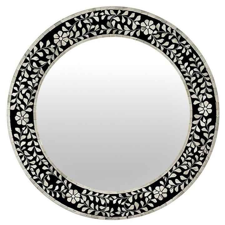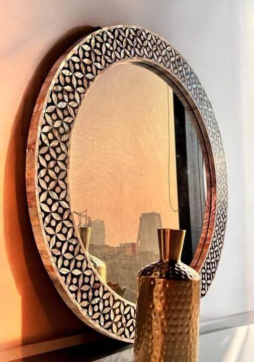 Traditional Artistic Wooden Wall Mirror with Mother of Pearl Shell Inlaid Handmade Elegant Decor for Home & Office Mirror