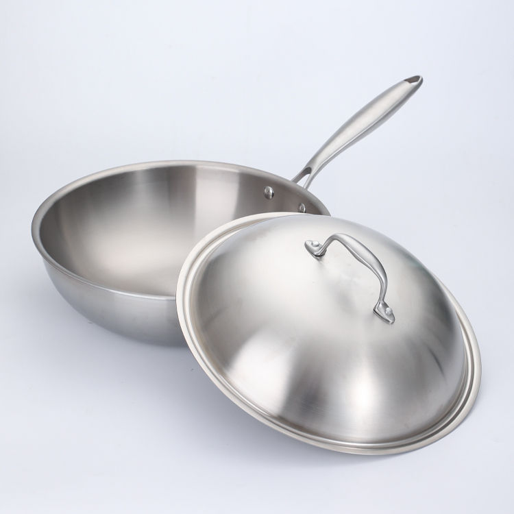 Wok artisanal en acier inoxydable de qualité supérieure pour cuisine asiatique traditionnelle, capacité 20L, poignée en bois, compatible lave-vaisselle