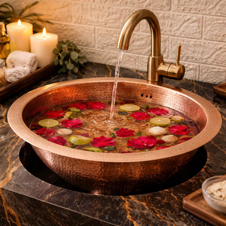 Traditional Ayurvedic foot bath Traditional Indian copper bowl Classic copper pedicure basin Ancient Ayurvedic foot soak bowl