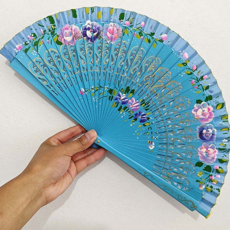 Éventail chinois traditionnel sculpté et peint en bambou pour mariage, décoration intérieure, cadeau d'affaires, 33 cm, idéal pour les festivals et les événements spéciaux.
