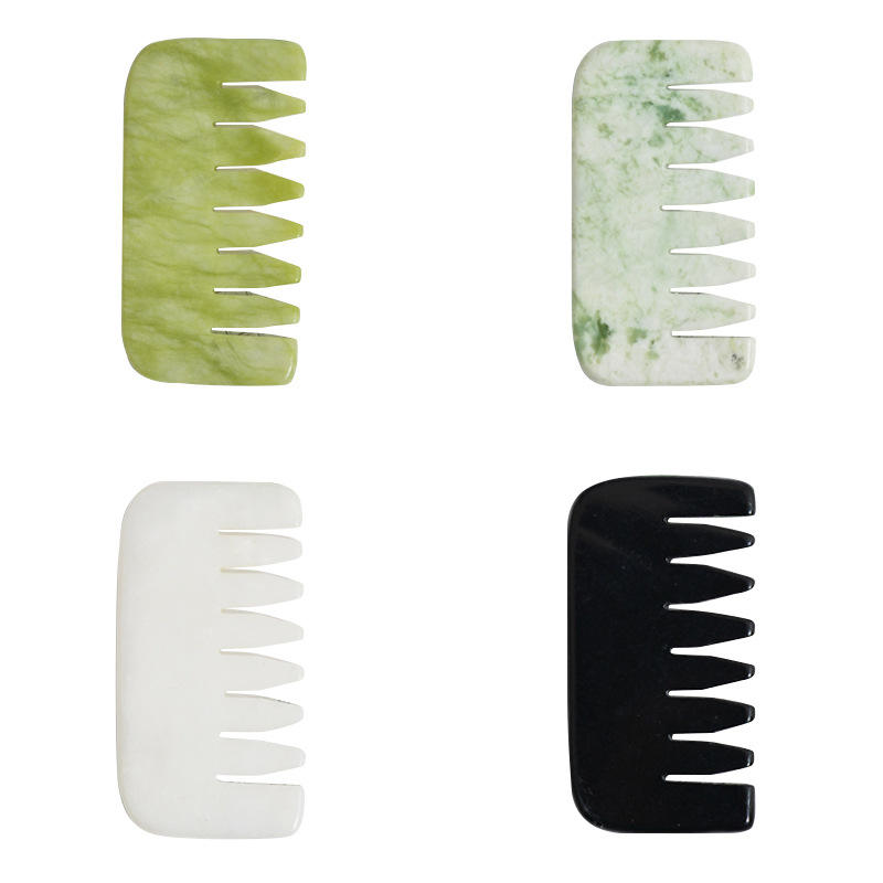 Acupuncture de spa de massage de peigne de jade de nature chinoise traditionnelle pour la thérapie de tête, peigne en pierre de Bian noir pour grattoir de corps de visage