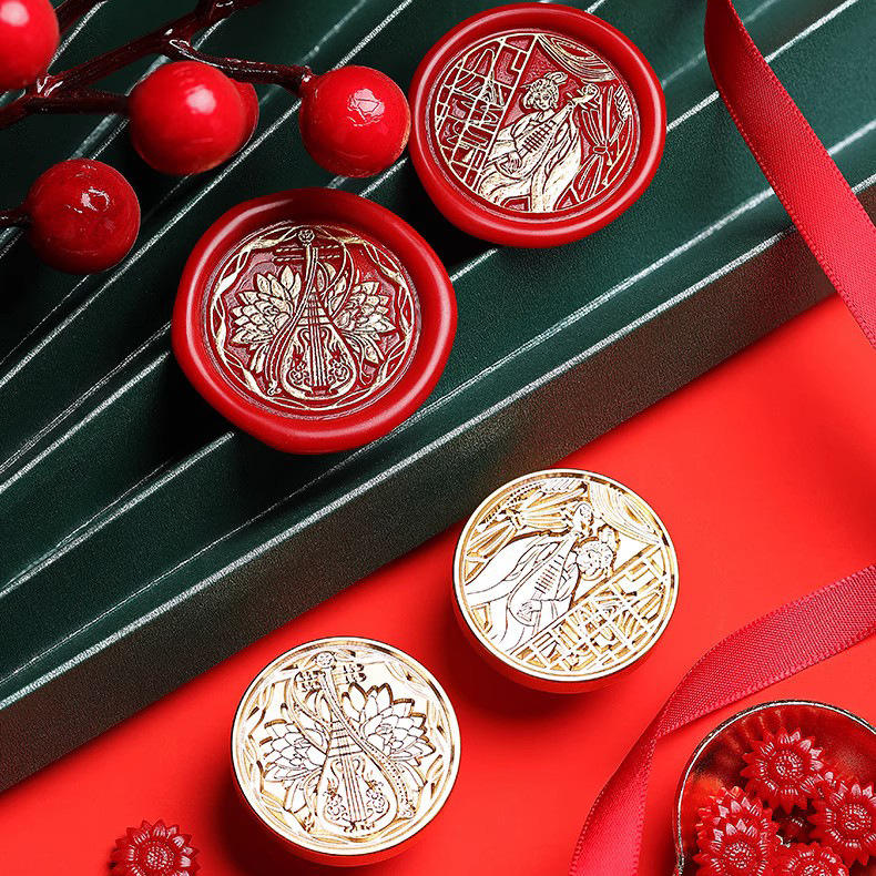Sceau de cire en cuivre de style chinois traditionnel, rond, avec motif Pipa en relief, pour lettres, journaux, cadeaux du Nouvel An chinois