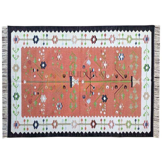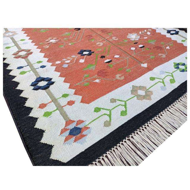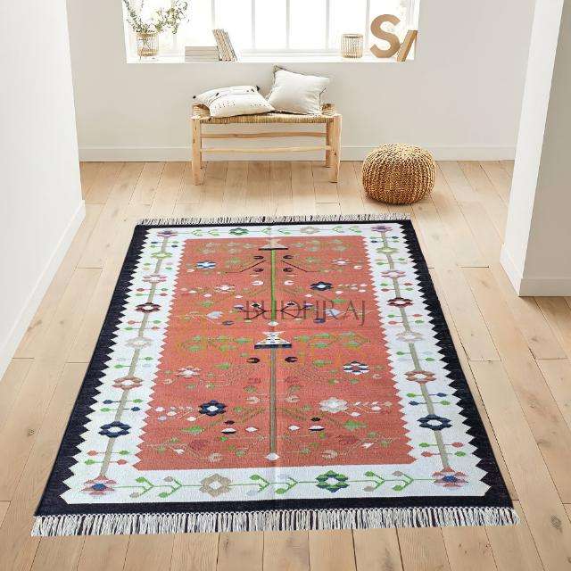Tapis traditionnel en coton Kilim Dhurrie Flatweave Texture pour salons et couloirs animés Tapis et ensembles