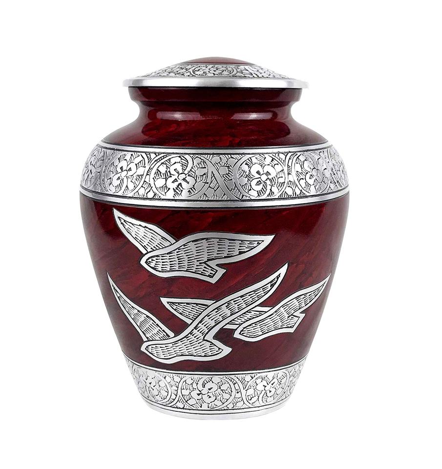 Urne de souvenir de taille standard en aluminium de couleur de texture pourpre d'urne adulte de conception traditionnelle pour les cendres humaines