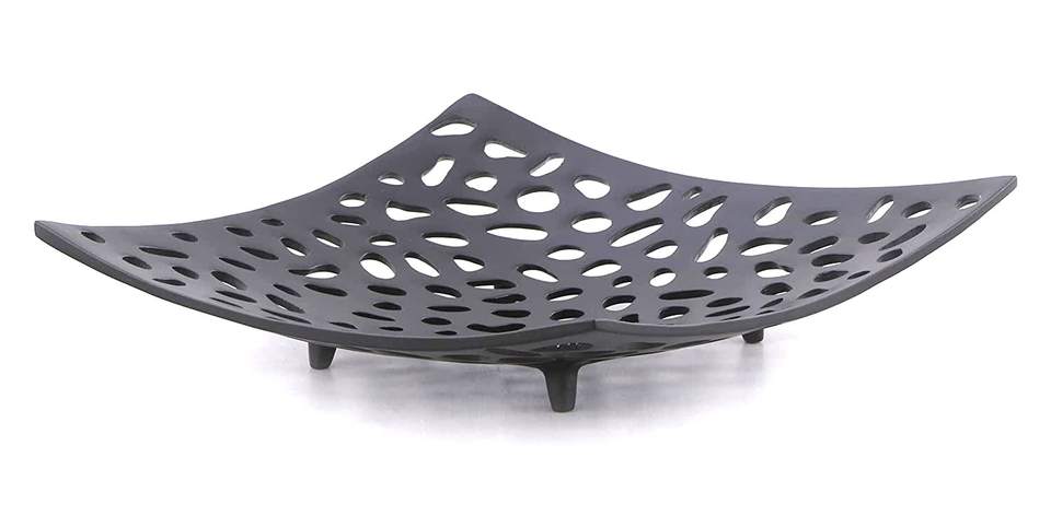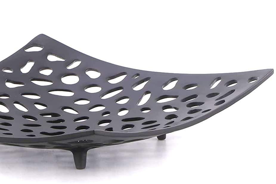 Plateau décoratif multifonctionnel en aluminium perforé texturé, design Art déco traditionnel, nature morte, 10,3 x 10,3 x 1,5 pouces