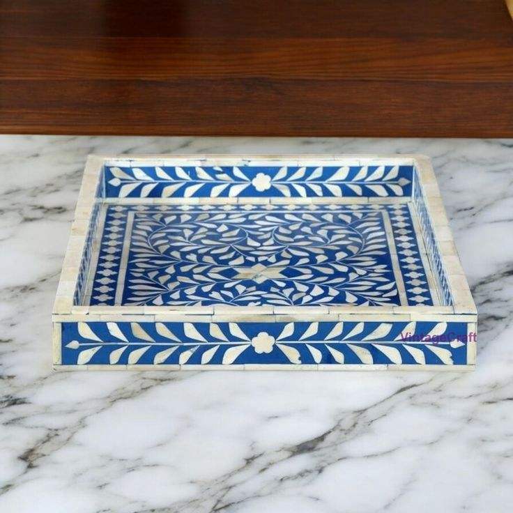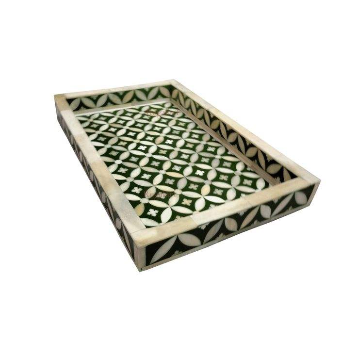 Plateau d'incrustation d'os de conception traditionnelle avec des motifs de conception florale plateau de service d'incrustation d'os pour la décoration de table