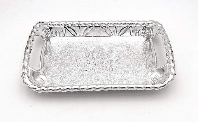 Plateau de service en forme de rectangle de conception traditionnelle plateau décoratif polyvalent en métal de finition argentée plateau de service élégant