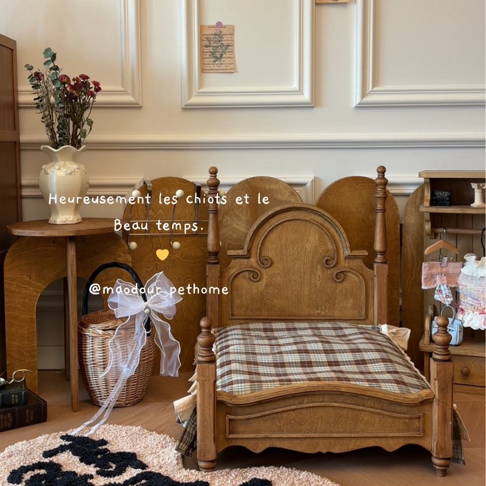 Lit de princesse en bois massif de conception traditionnelle anciennes colonnes romaines couvrant la maison du chien et du chat pour toutes les saisons