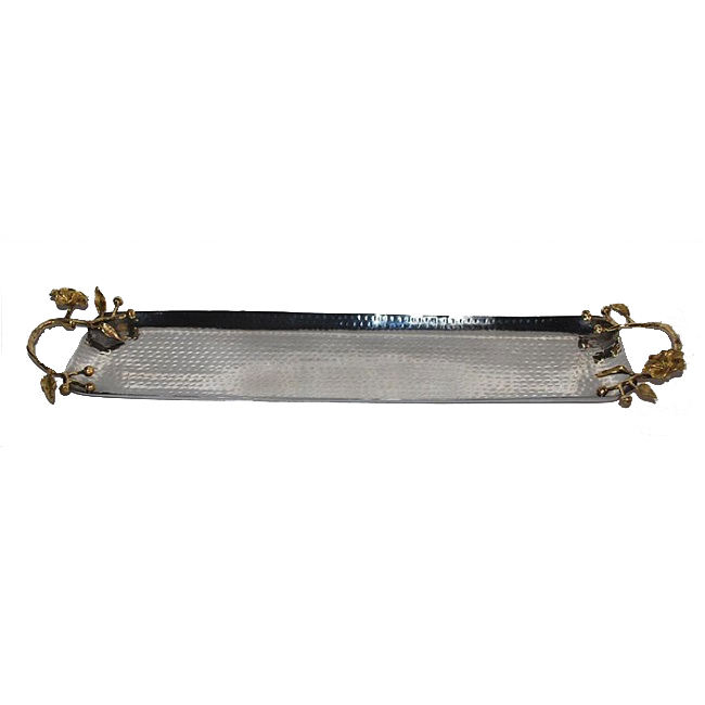 Designer traditionnel plateau de service en métal de qualité supérieure plateau de fantaisie fait à la main en acier inoxydable martelé plat de service fini