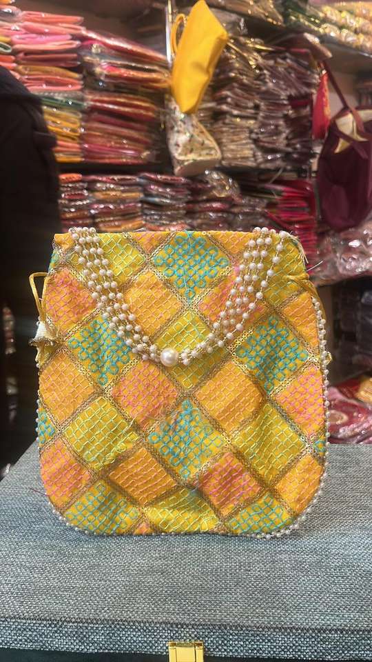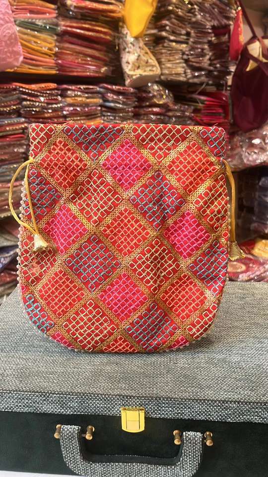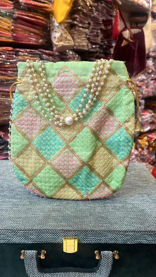Potli de soie à carreaux brodés traditionnels avec doublure en coton à poignée perlée sac de soirée de mariage ethnique