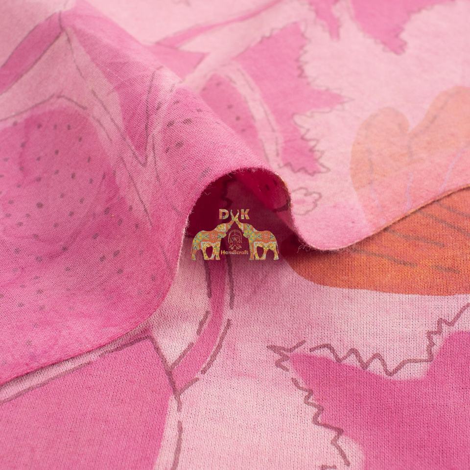Tissu en coton 100% artisanal, imprimé à la main avec des motifs floraux ethniques traditionnels, fabriqué à Jaipur, respectueux de l'environnement, respirant