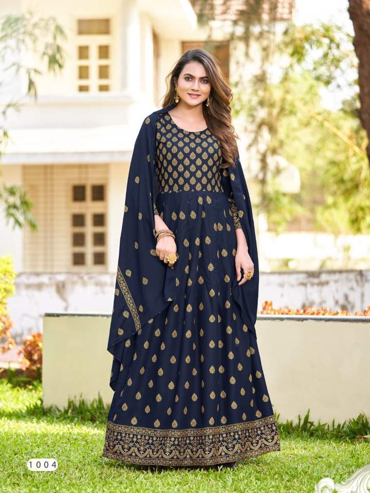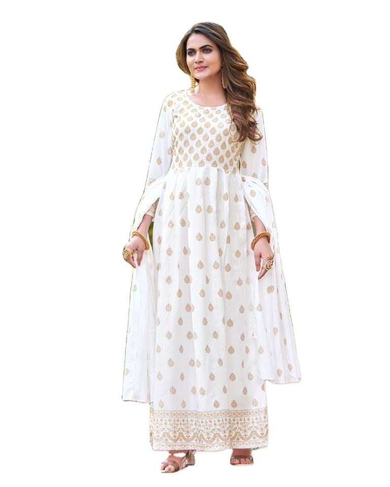 Vêtements ethniques traditionnels travail imprimé Anarkali Kurti avec longueur moyenne 2.5 m mousseline dupata acheter au prix de gros