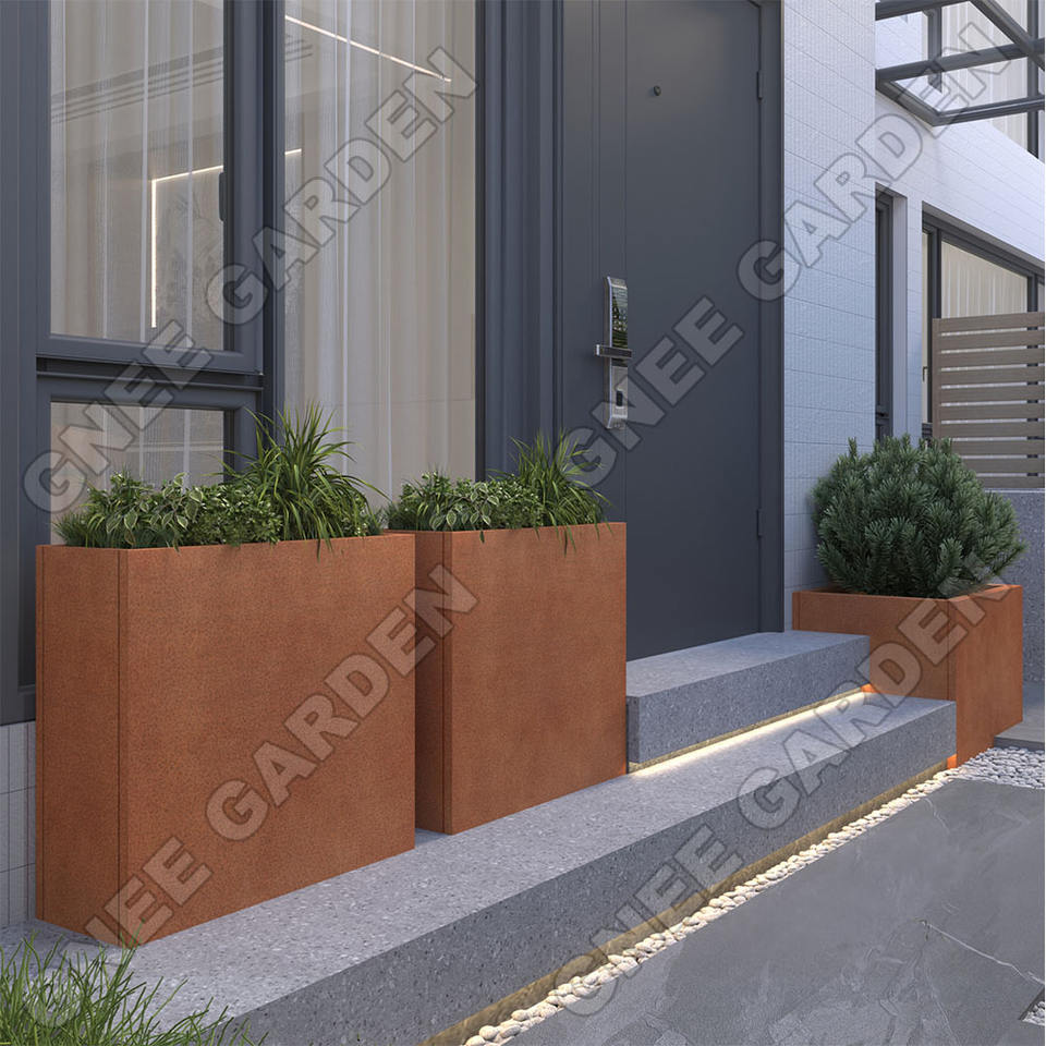 Conception de sol traditionnel maison centre commercial ferme-Style corten acier jardin jardinière carré Pot de fleur pour la décoration extérieure