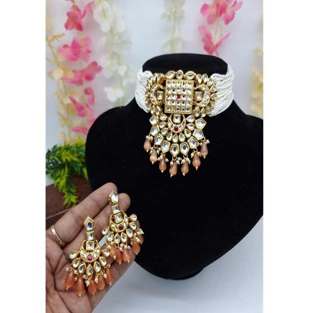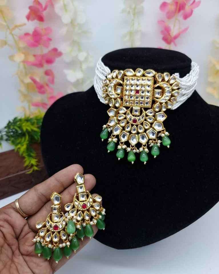 Ensemble de collier ras du cou en perles Kundan plaqué or traditionnel Style ethnique festif pour femmes et filles pour la fête et le mariage