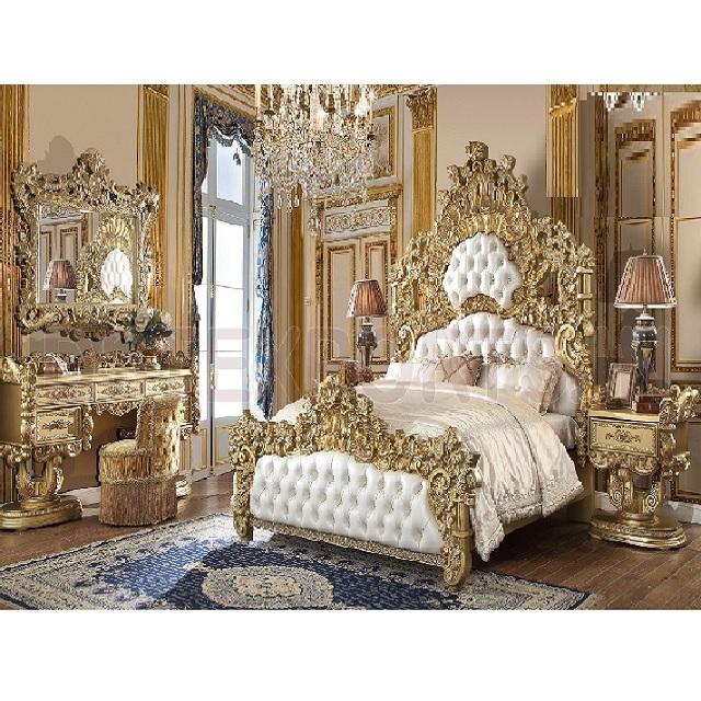Ensemble de meubles de chambre à coucher traditionnels dorés fabriqués ensemble de meubles de chambre à coucher de luxe CAL King Size ensemble de lit et de chambre à coucher de luxe sculpté en or