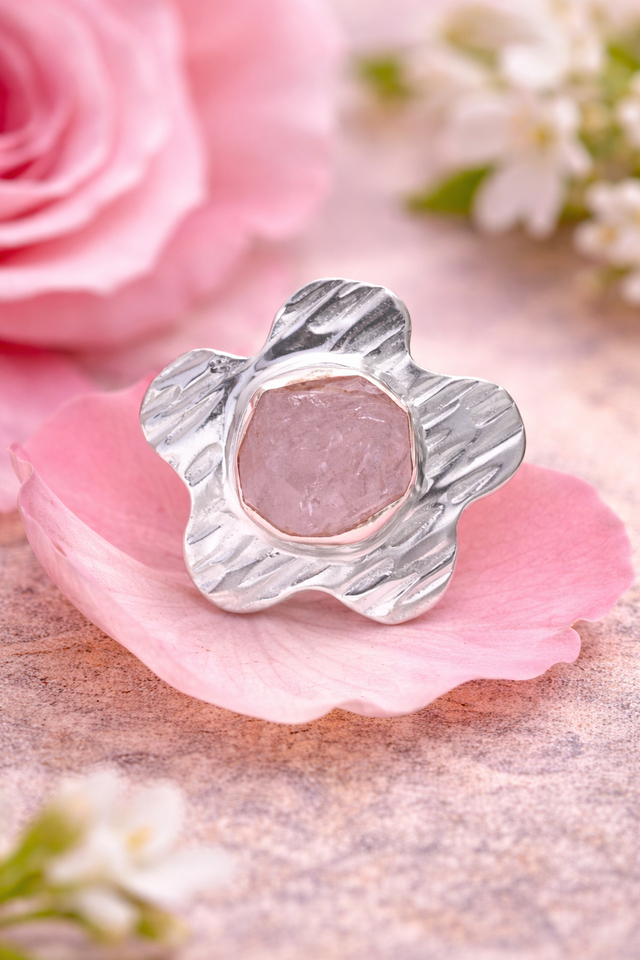 Bague artisanale en argent sterling 925, sertie de pavés, en quartz rose naturel de qualité supérieure, style traditionnel, bijoux fins pour les fêtes