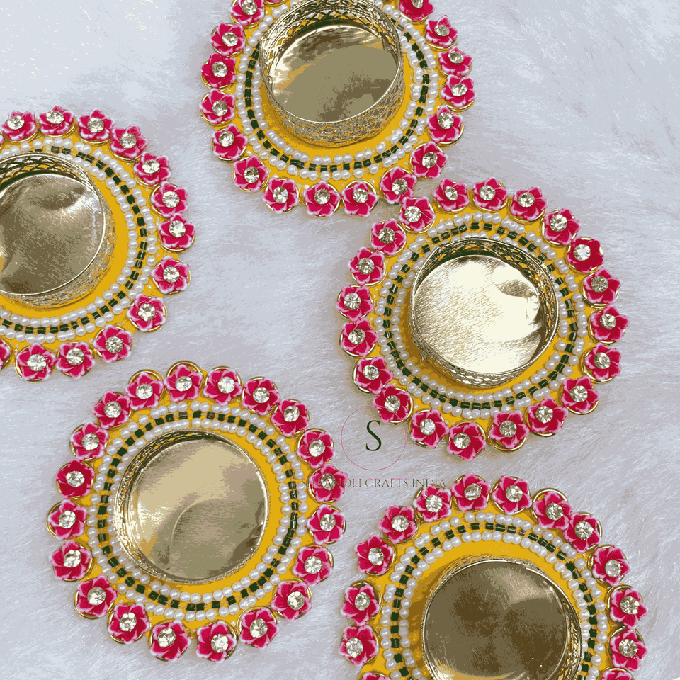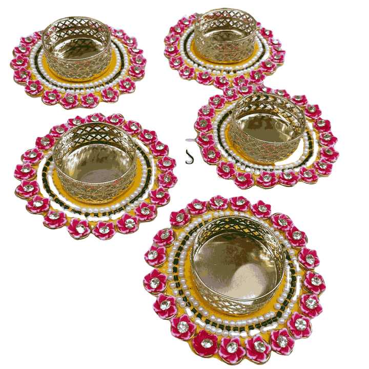 Bougie de chauffe-plat de forme ronde traditionnelle de bonne qualité avec des perles de perle pierre pour la décoration de Diwali de maison de pièce centrale de Table