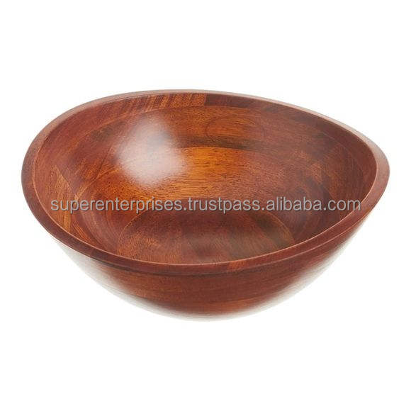 Bol en bois artisanal traditionnel pour servir les salades en cuisine, bois massif, grande capacité, vaisselle de table